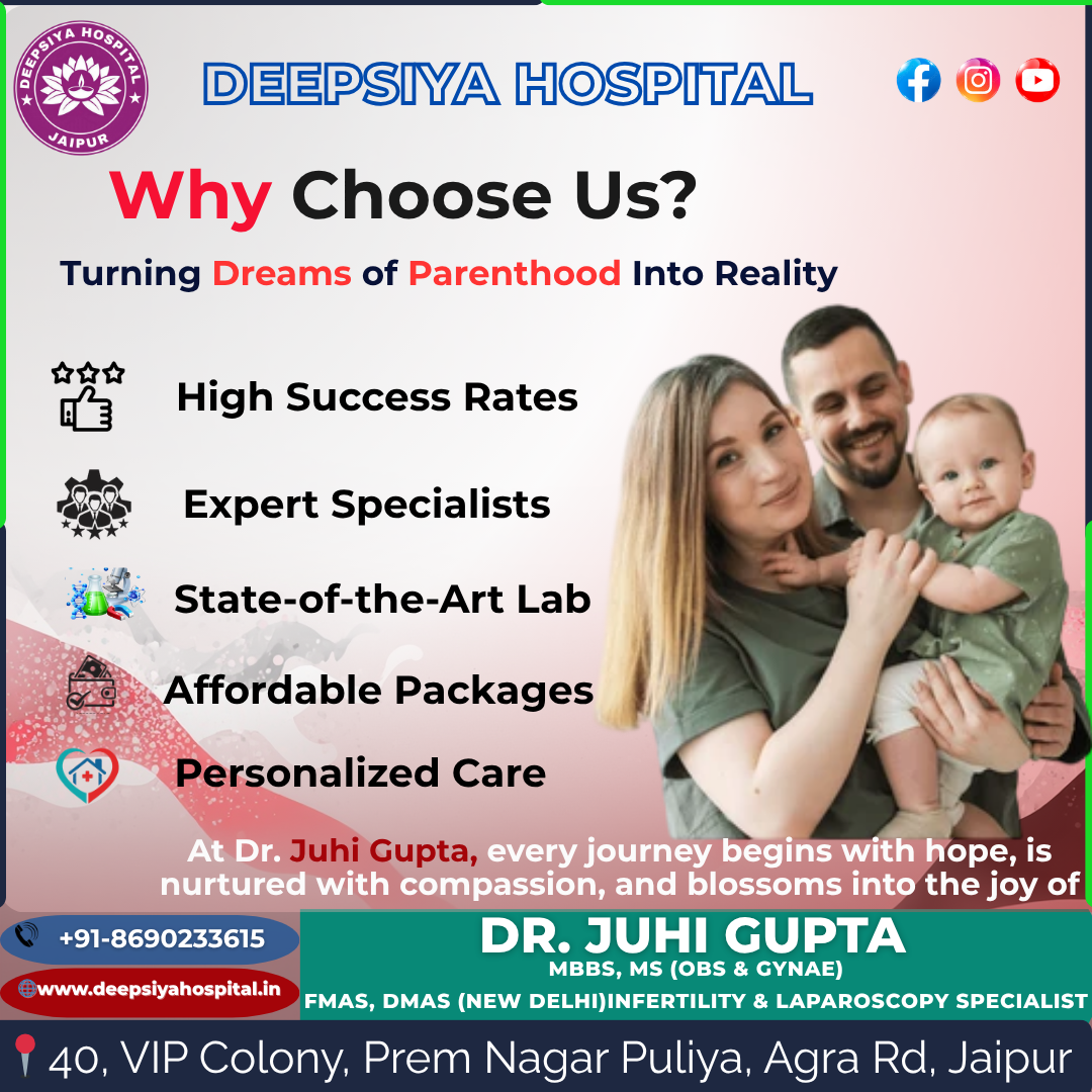 Every women’s health concern now has the right, safe, and modern solution at Deepsiya Hospital Agra Road Jaipur. From infertility treatment to advanced laparoscopic surgery, receive experienced and compassionate care with Dr. Juhi Gupta. Book your appointment today and give your health the care it truly deserves! Address: 40, VIP Colony, Prem Nagar Puliya, Agra Rd, Jaipur 🌐www.deepsiyahospital.in